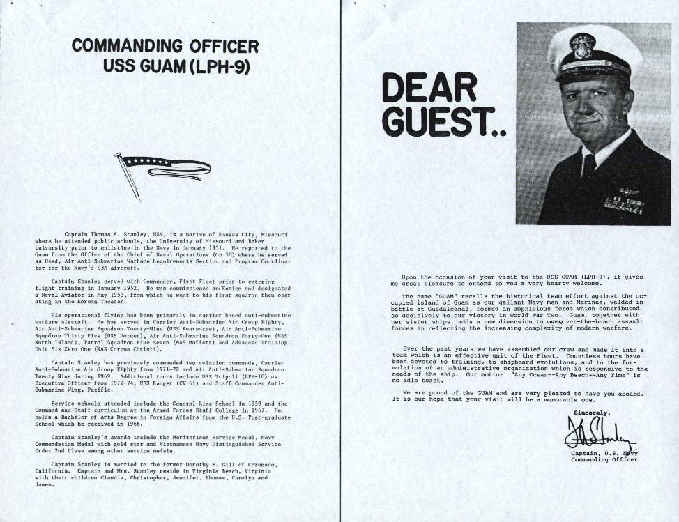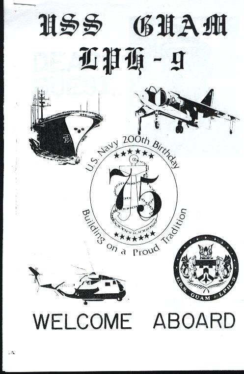 This section is broken up into various scanned images of documentation during the commissioning of the USS Guam LPH-9. Click on a link with the corresponding topic to view the scanned image.