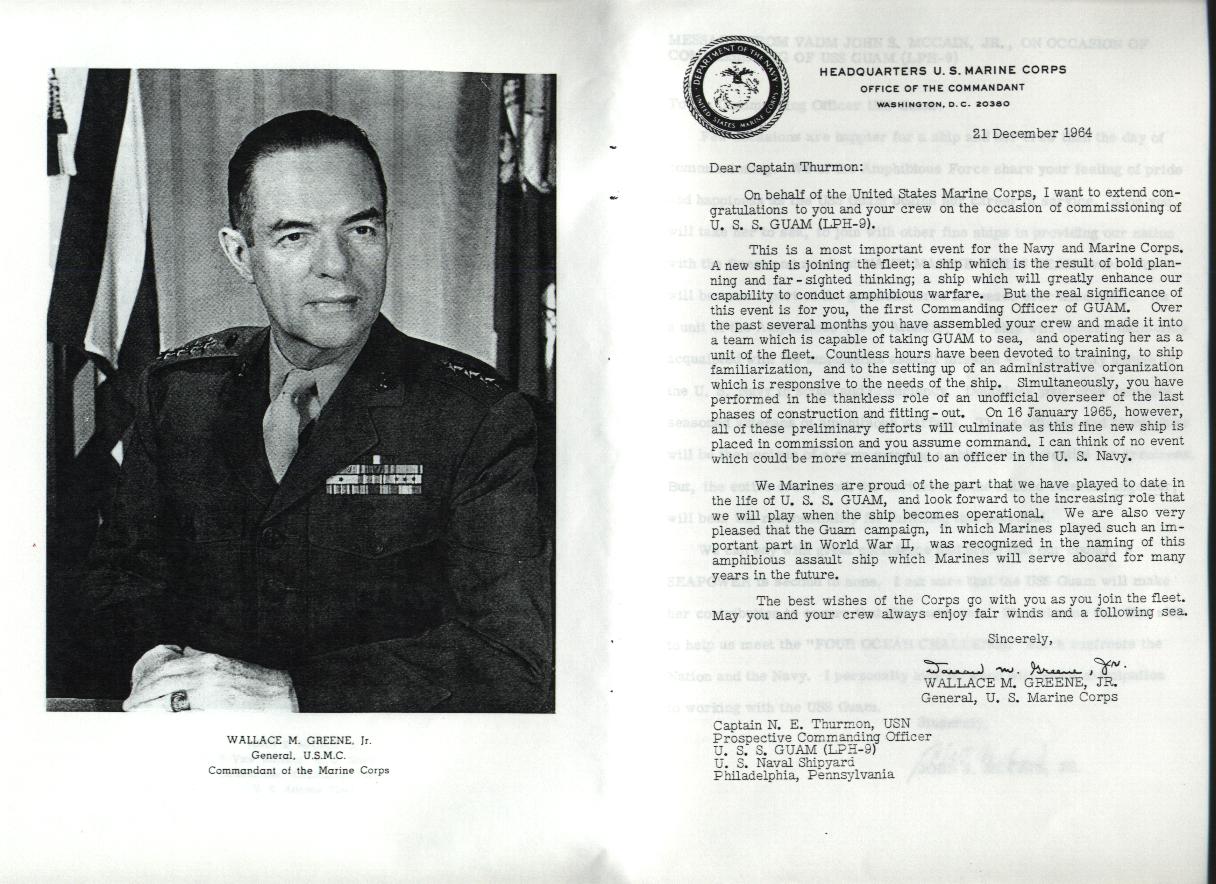 Letter from Commandant of the U.S. Marine Corps Wallace M. Greene, Jr. (scanned image)